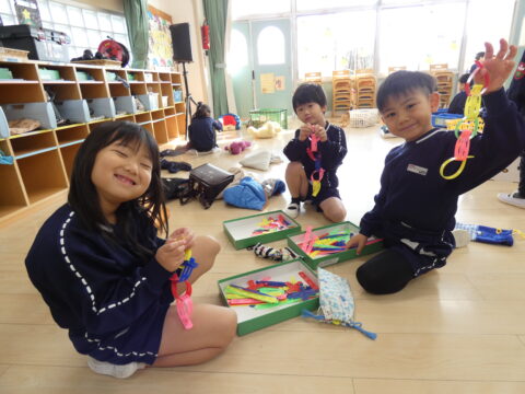 ピップで輪っかを作ったり、ミャクミャクを作ったりと