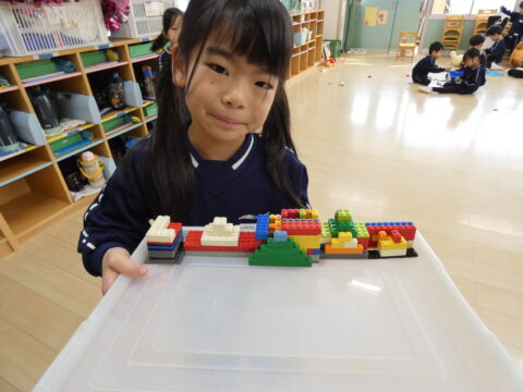 レゴでお城を沢山作っている女の子👧