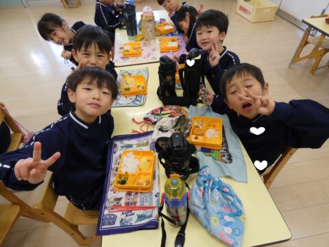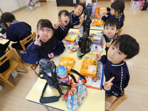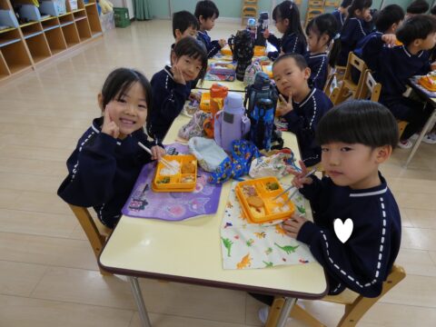 お遊戯発表会の練習を頑張り給食の時間です🥢