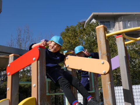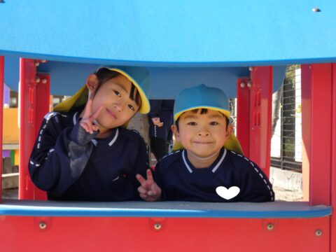 遊具の中で仲良く遊んでいるお友達🥰