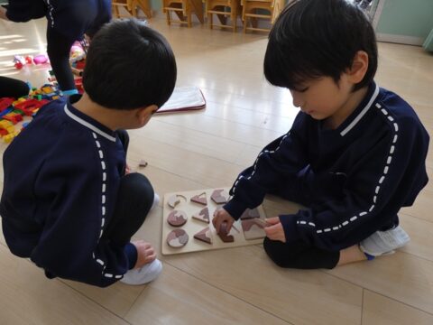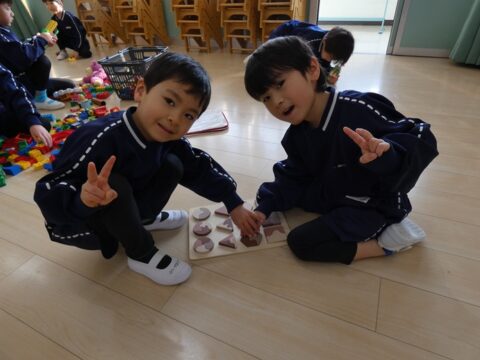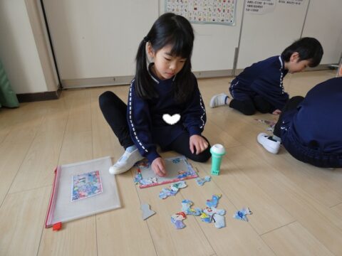 2人でパズルを完成させていました!