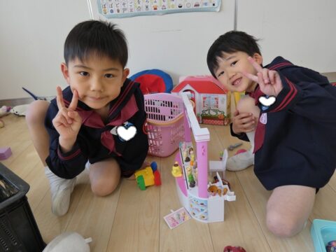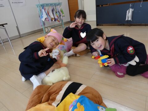 ぬいぐるみで遊んでいるお友達!