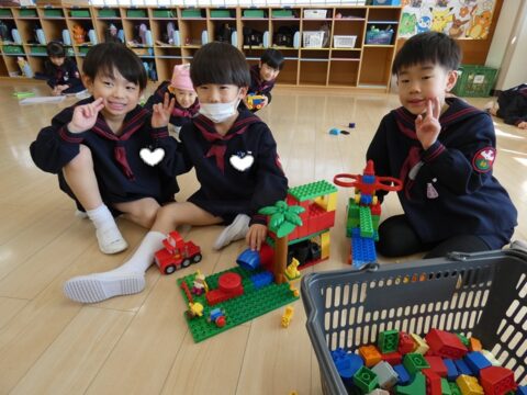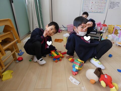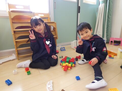 仲良くブロック遊び!