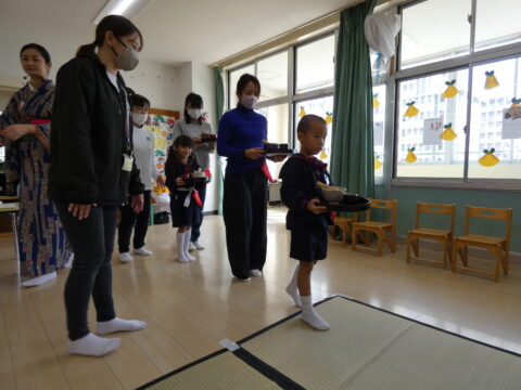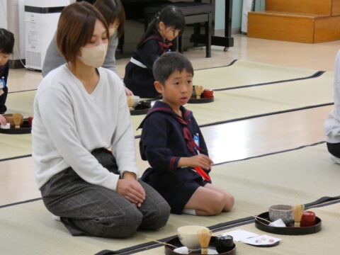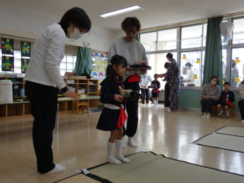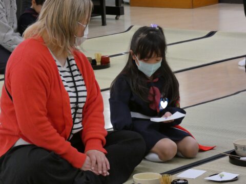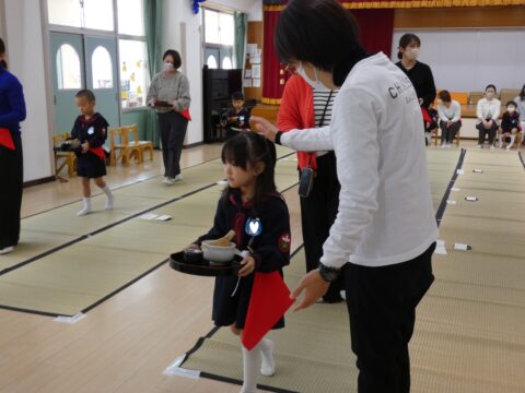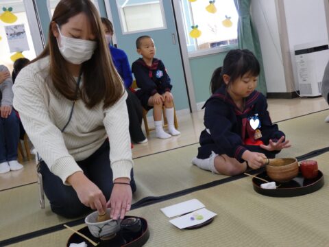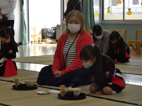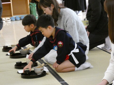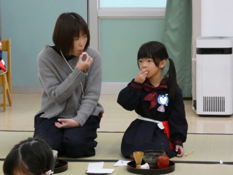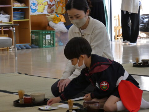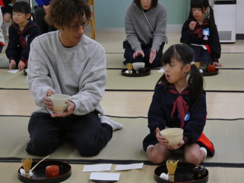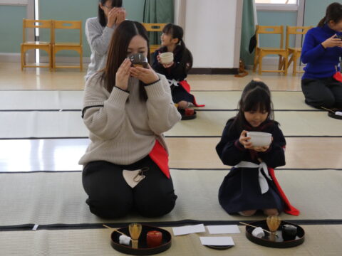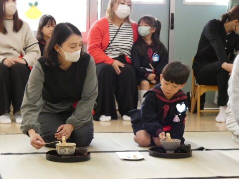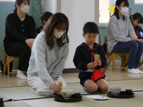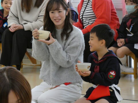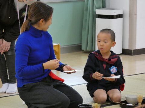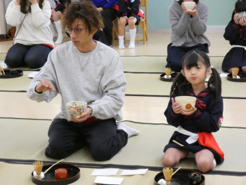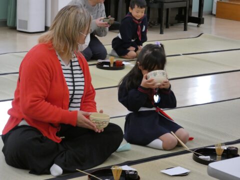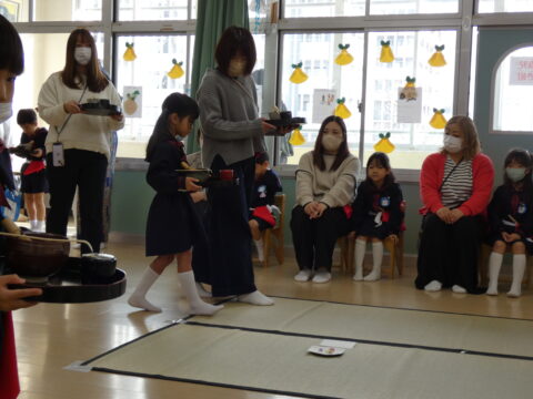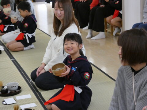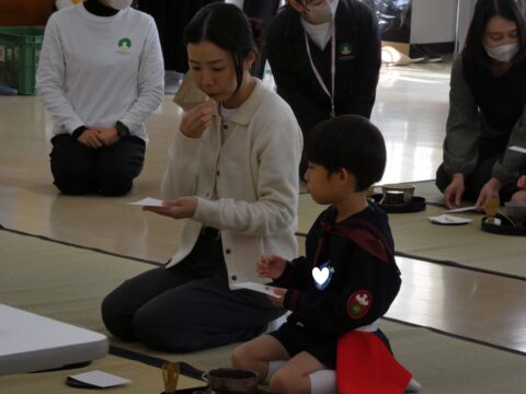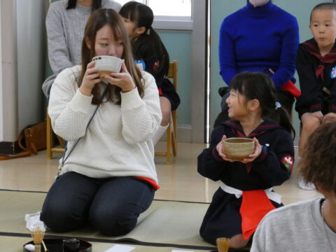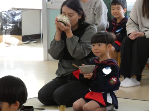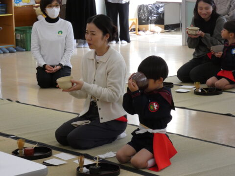 お茶は苦かったようですが、頑張って飲んでいましたね。