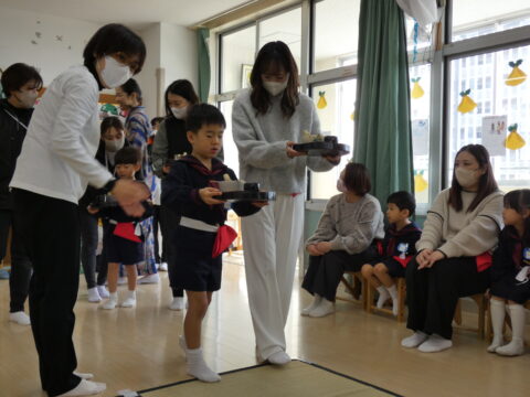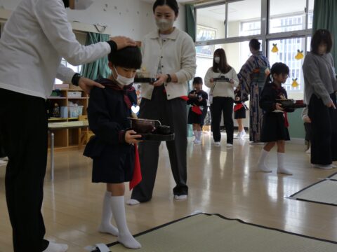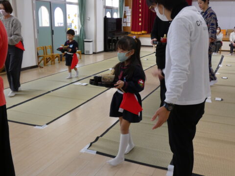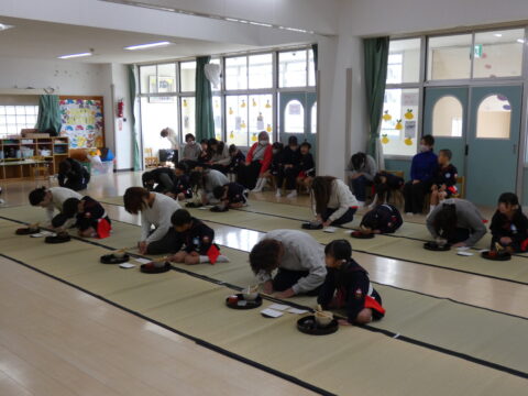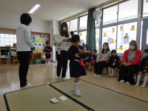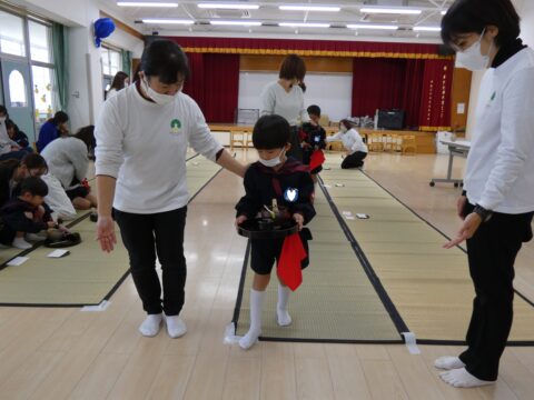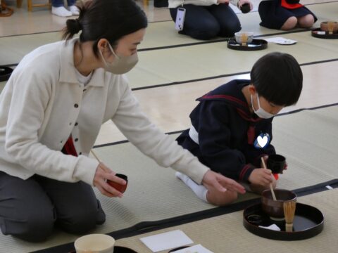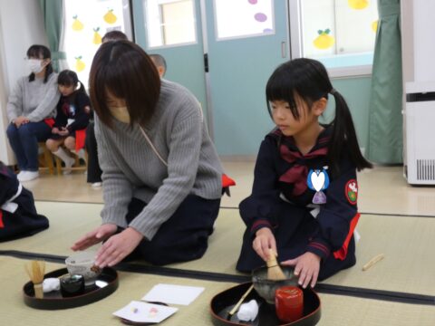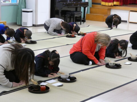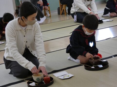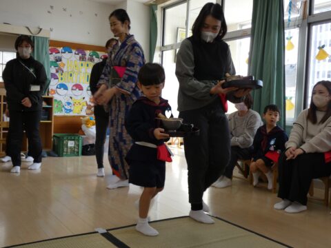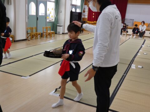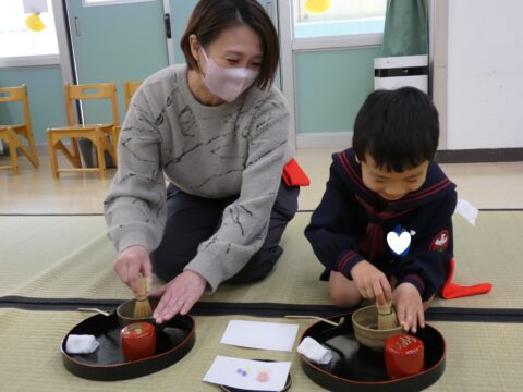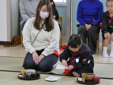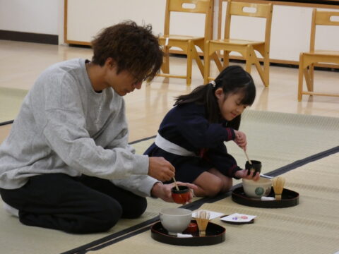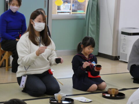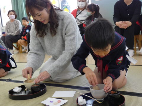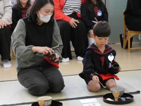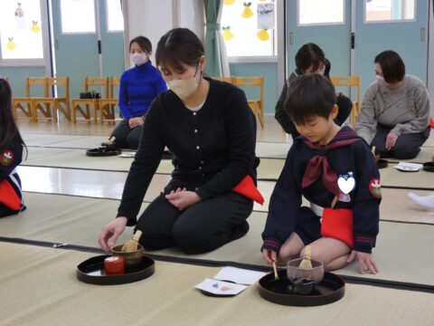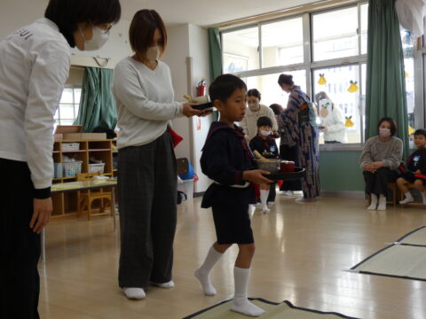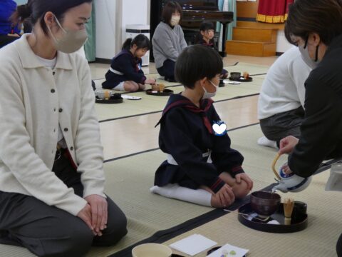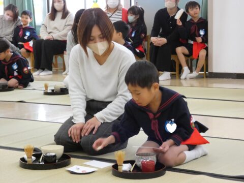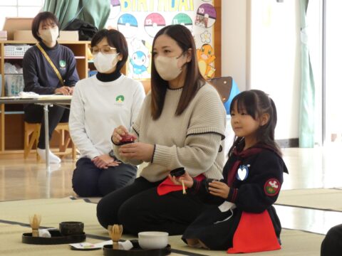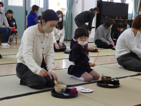 お茶は苦かったようですが、頑張って飲んでいましたね。