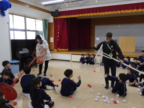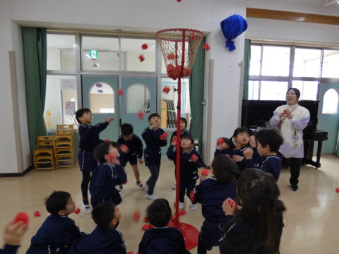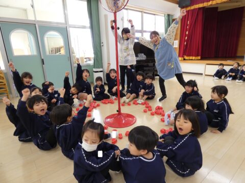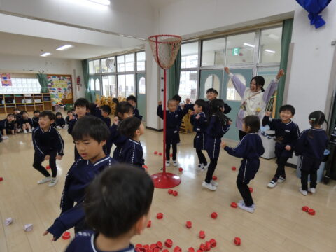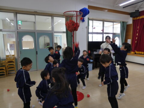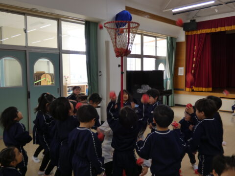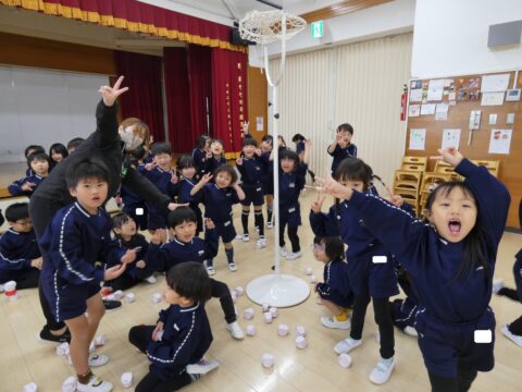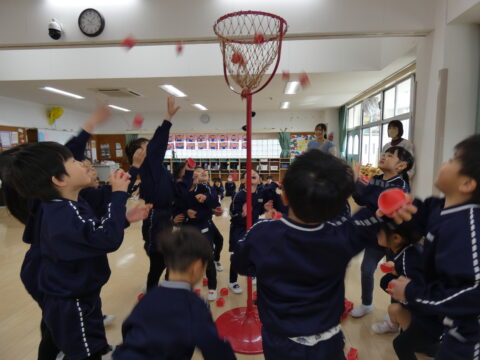 にこにこクラス対抗で玉入れ対決をしました!🔥