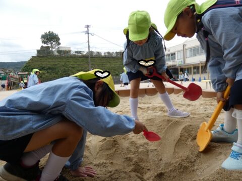 砂を掘ってお店の準備をしているお友達も💕