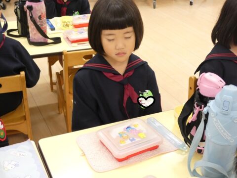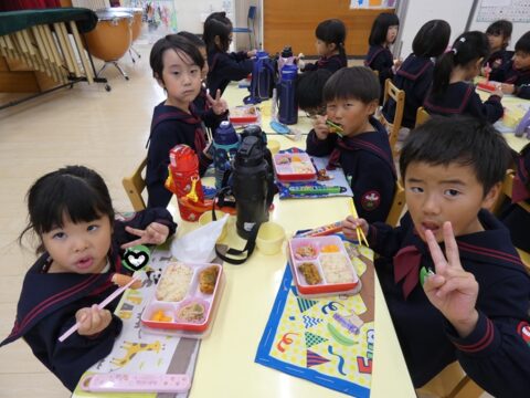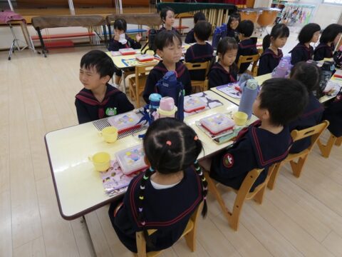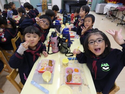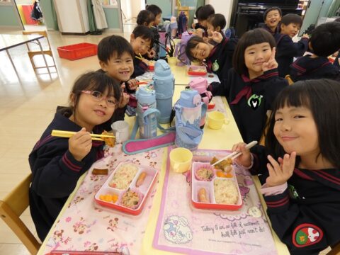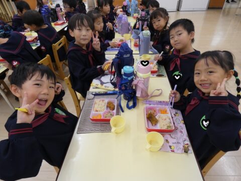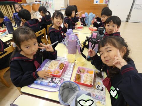 外で遊んだ後は給食の時間です🥢