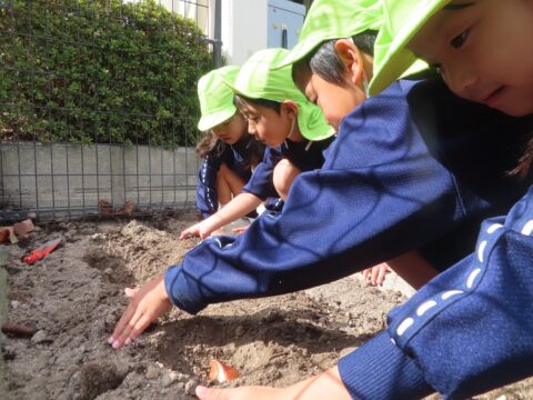 球根を置いて優しく土のお布団をかけます😊