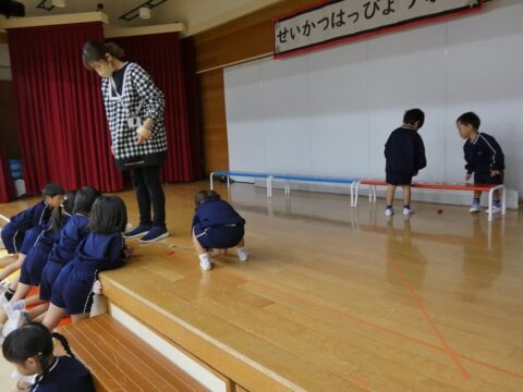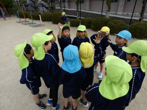 お手伝いをするあられ組さん🐤