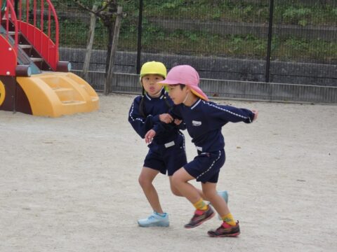 にじ組の男の子を捕まえた女の子。