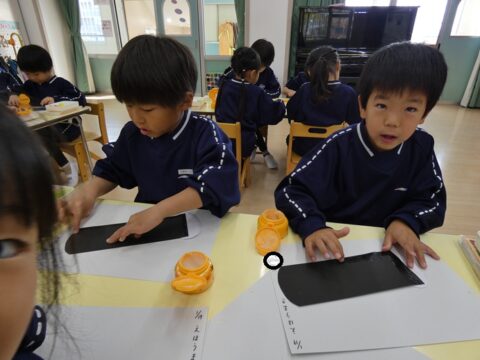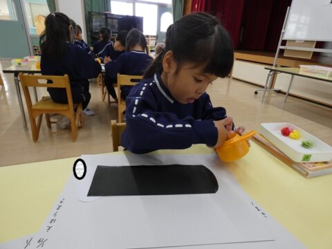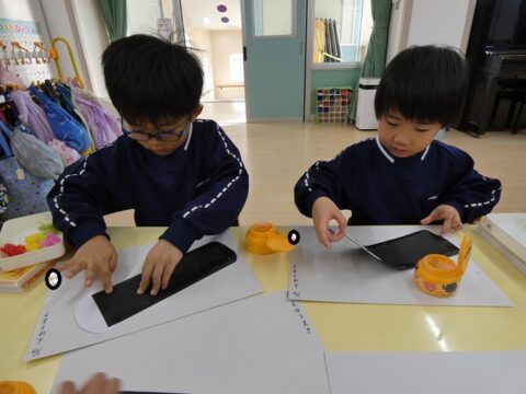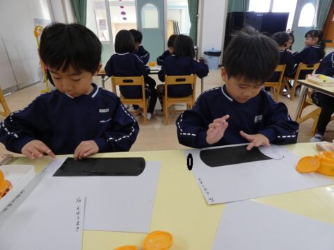 自由遊びをした後は、月製作をしましたよ!