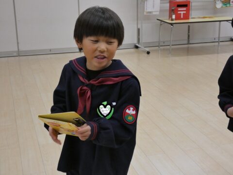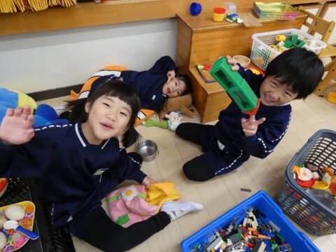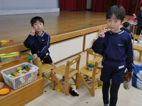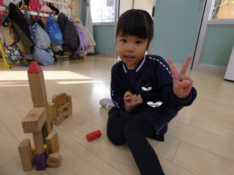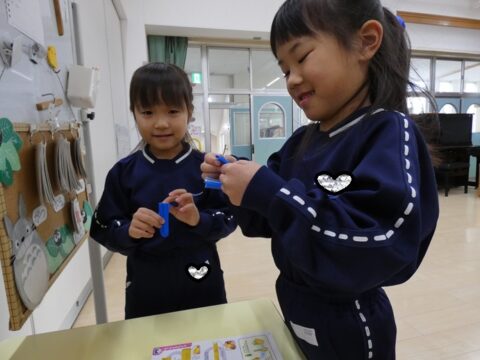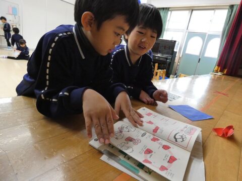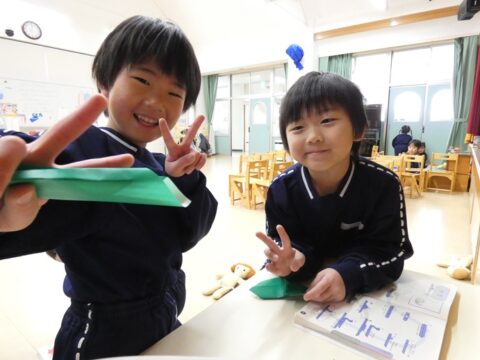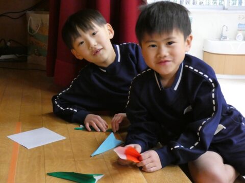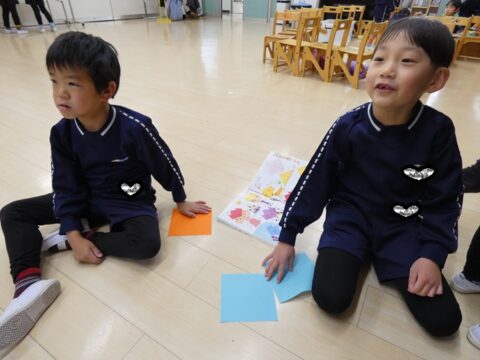 鬼のお面を作った次の日から自由遊びで折り紙で遊ぶ