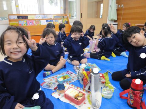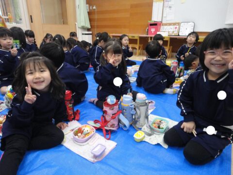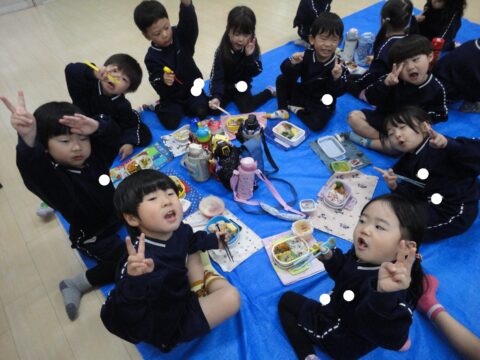 ワイワイ楽しくお弁当を食べていますよ😋