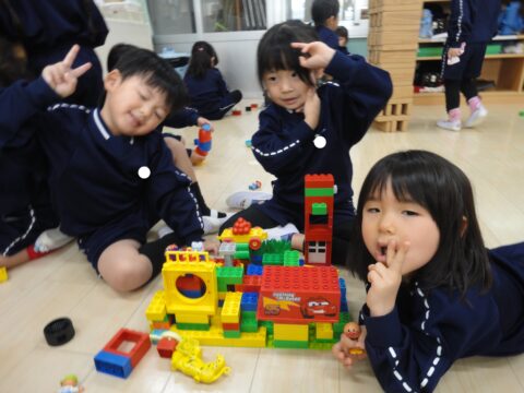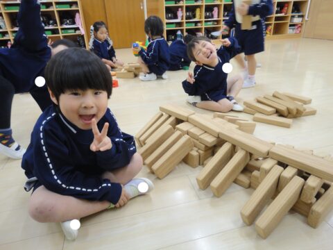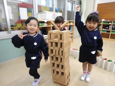 お友達と協力して大きなタワーが完成✨