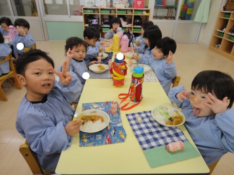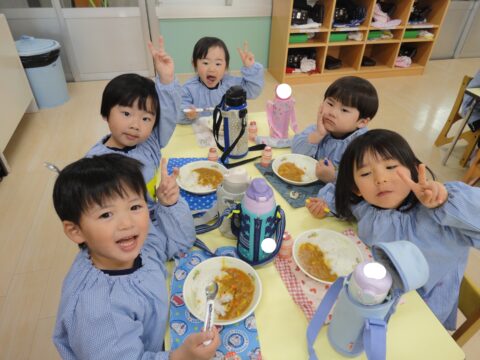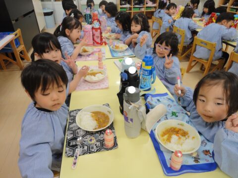 お昼ご飯は、ゆき組で食べる最後のカレーライス🍛