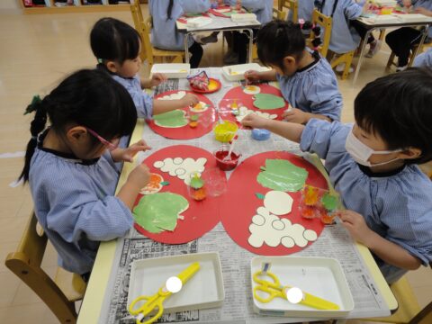 はさみ・絵の具・筆・綿棒・自分の指!