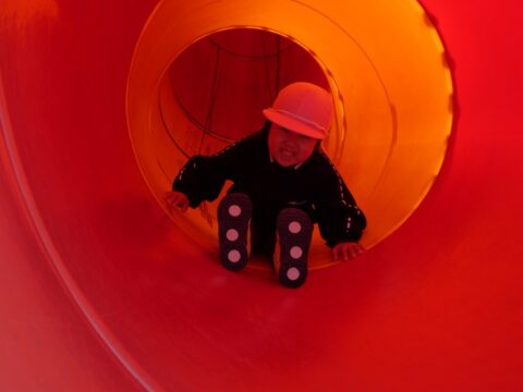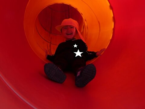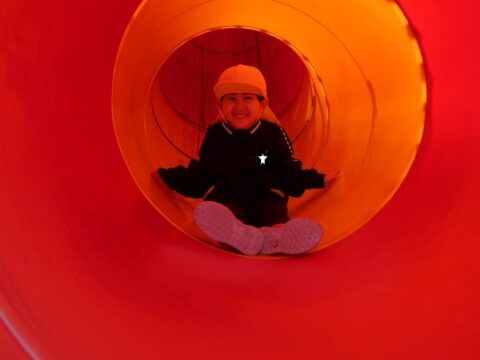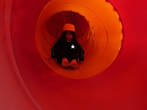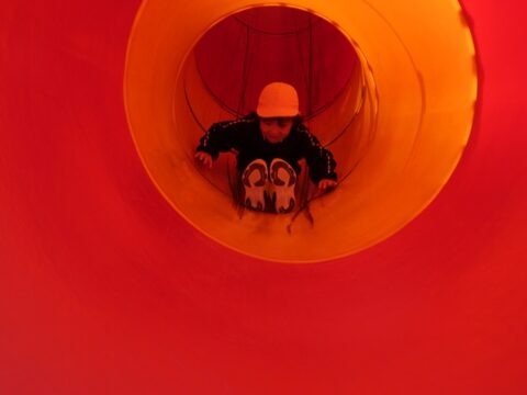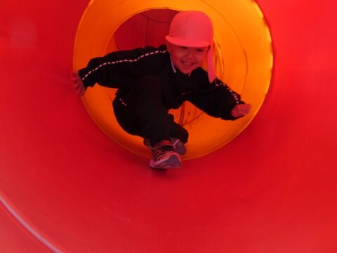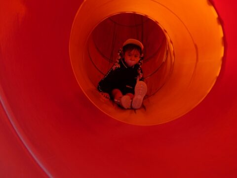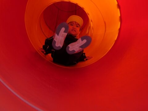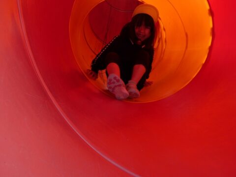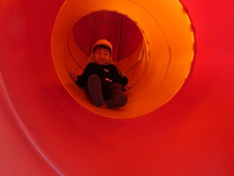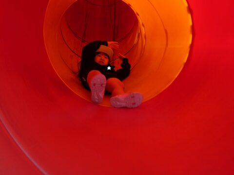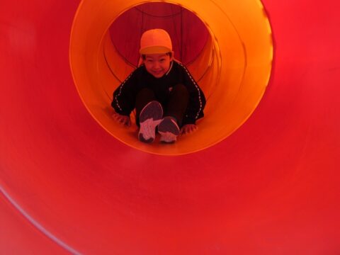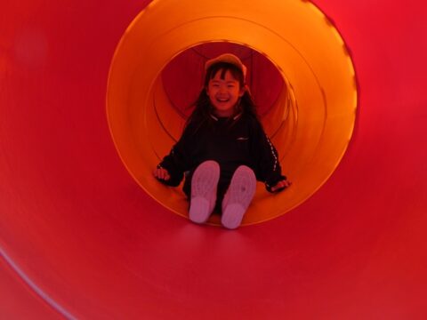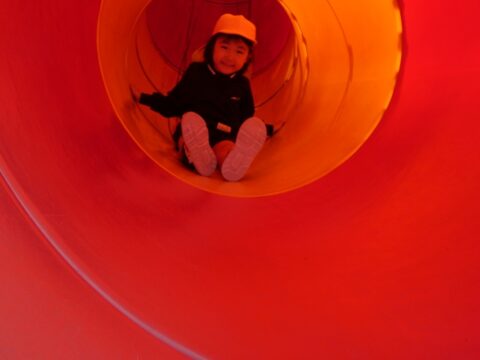 何年ぶりにこんな長い滑り台を滑ったか
