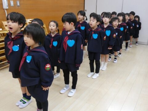 ♪幼稚園のうたを歌い