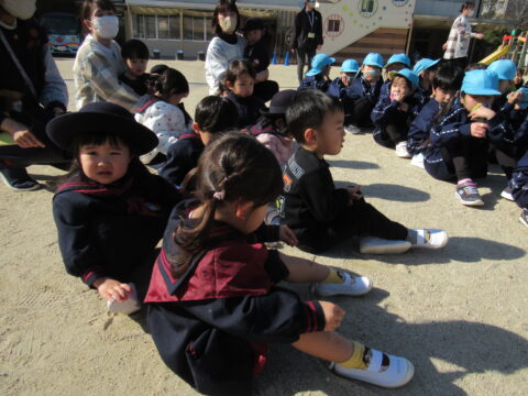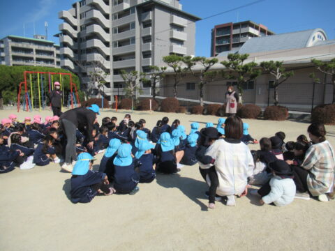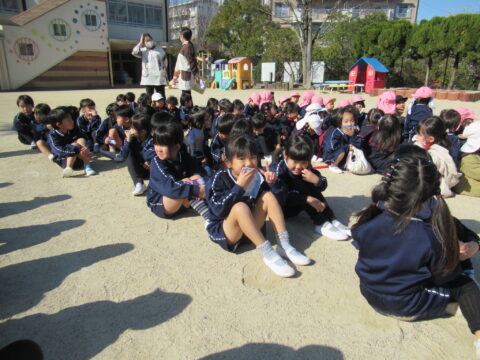 園庭に無事避難したら園長先生から