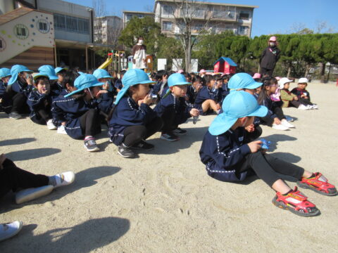2分ほどで園庭に集まることが出来