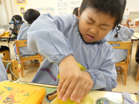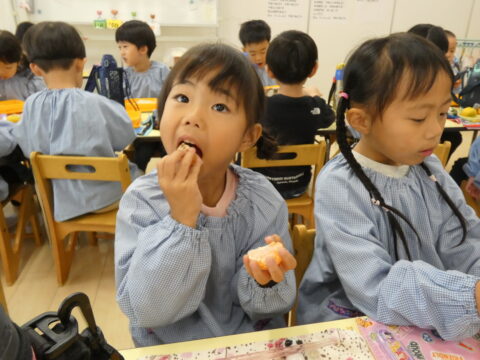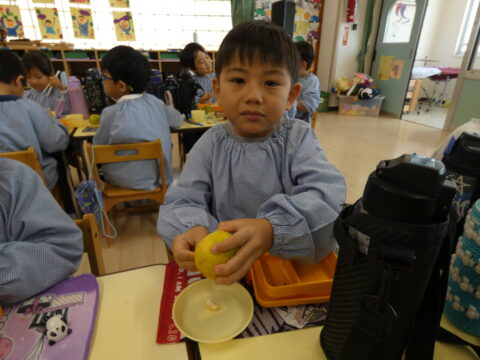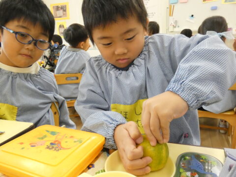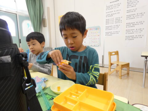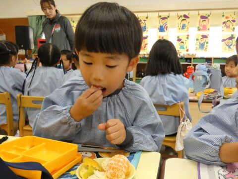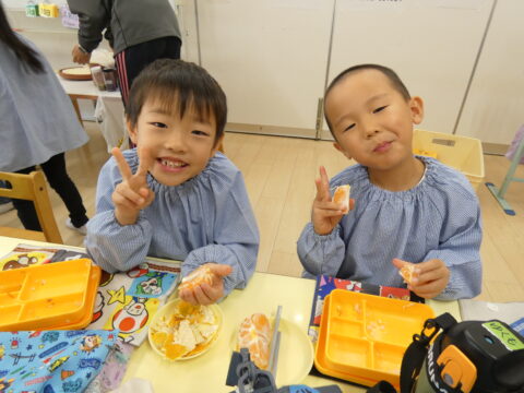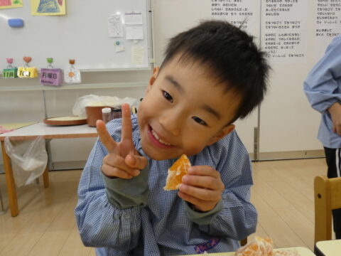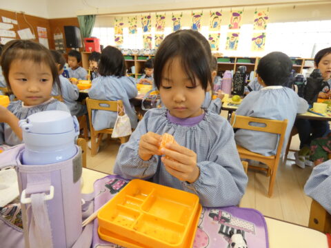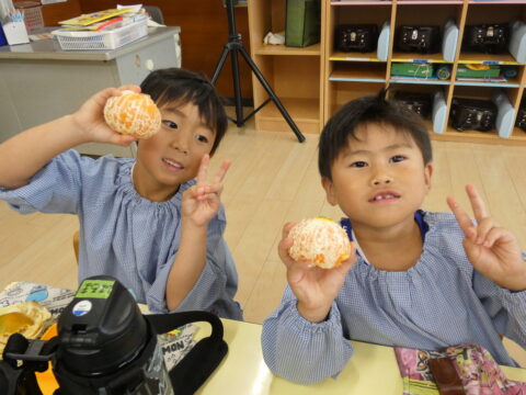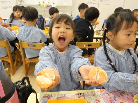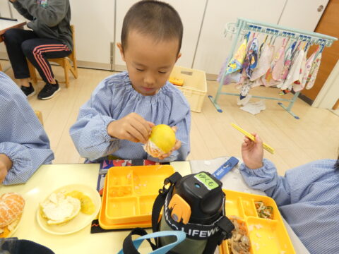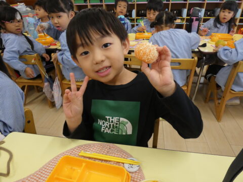 給食の時間に1つだけ食べました🍊