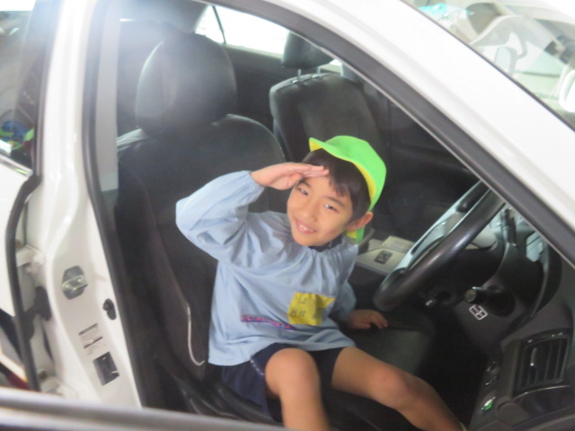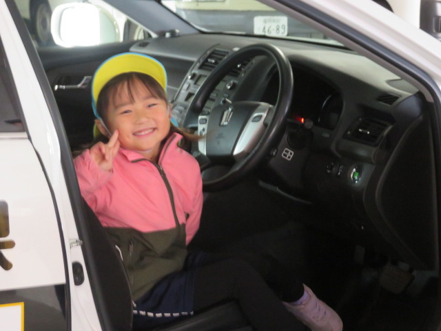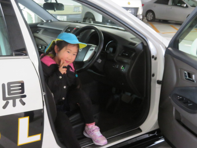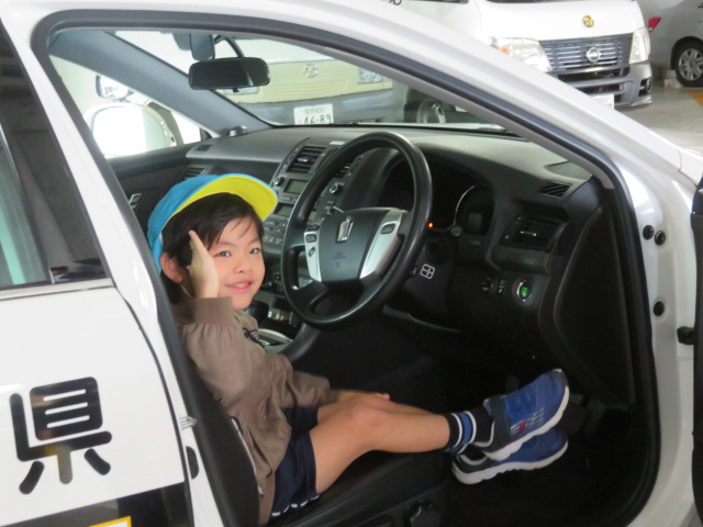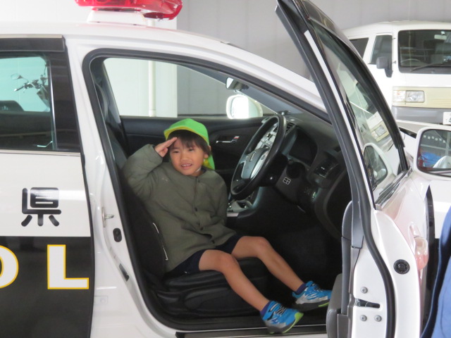 お次は外に移動してパトカーに試乗させて