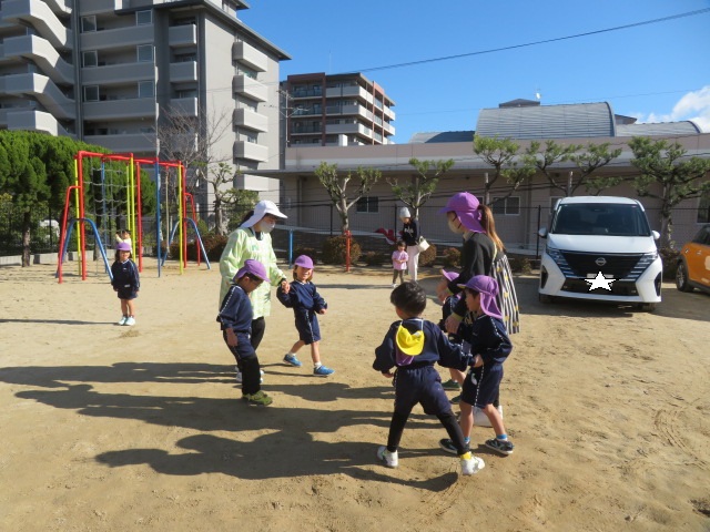 つきぐみとほしぐみ、みんなで輪になって