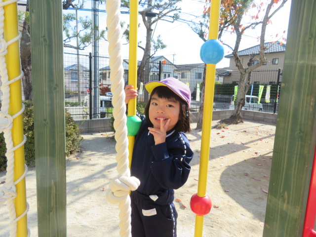 \遊具の下は風が来ないから寒くないね!/