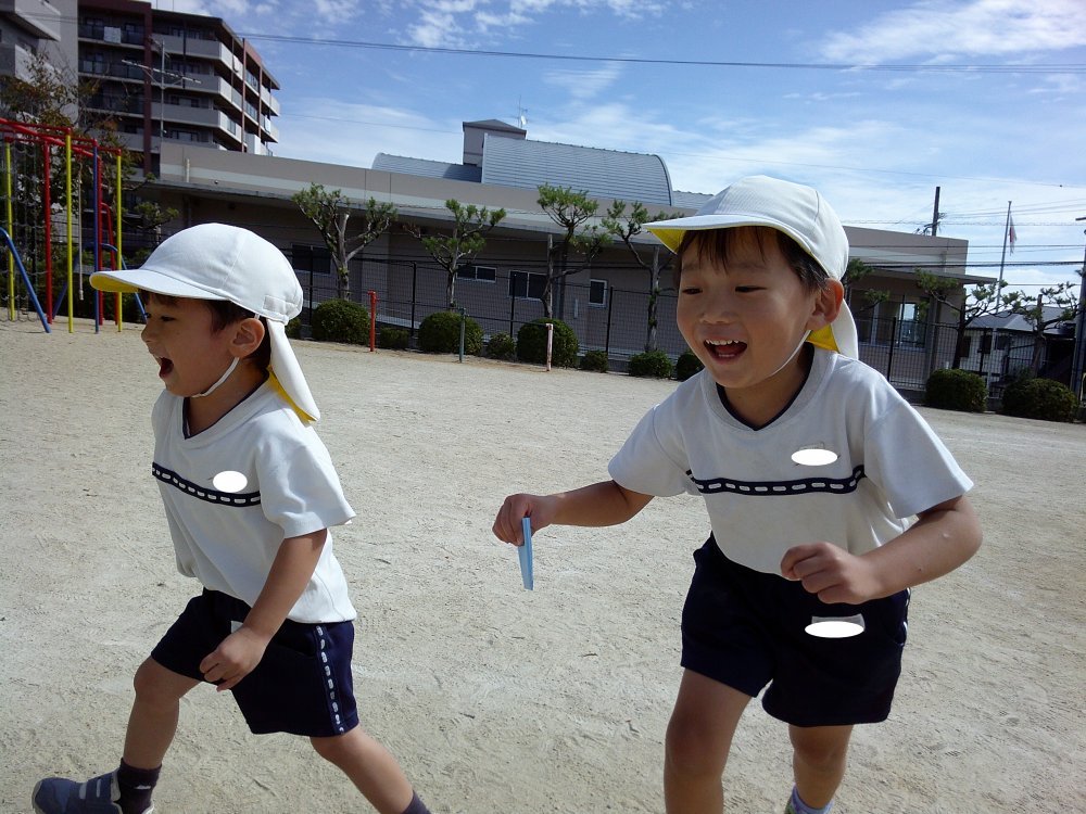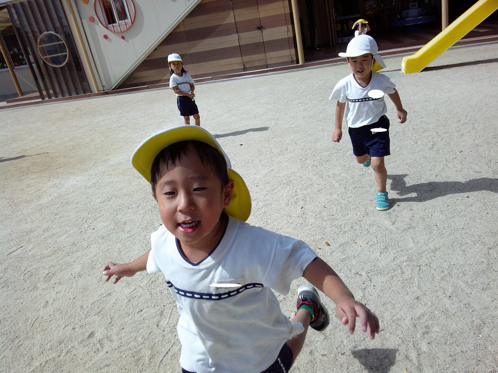 爽やかな秋空の下、元気よく走り回ったり