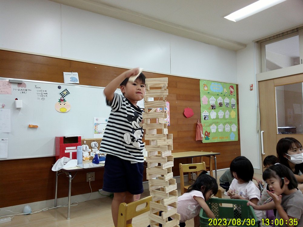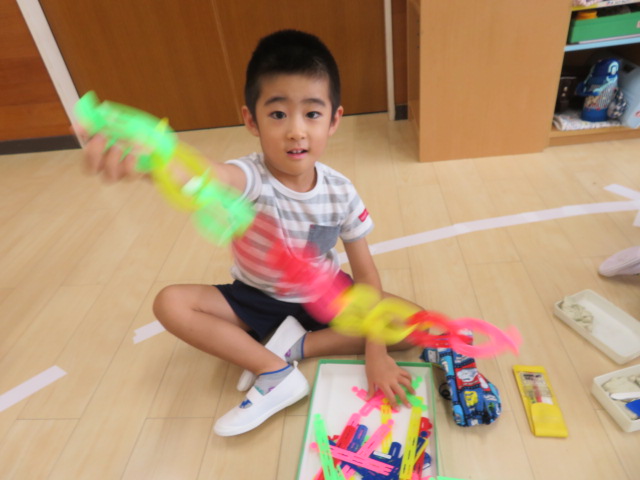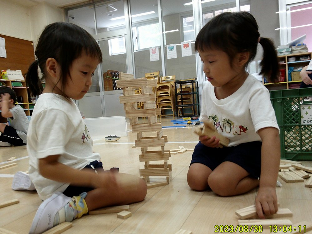 ゆき組では、最近カラカラ積み木が大人気!