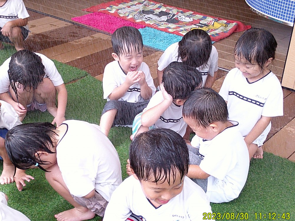 着替える前には、何故か頭からのシャワーがお決まり!