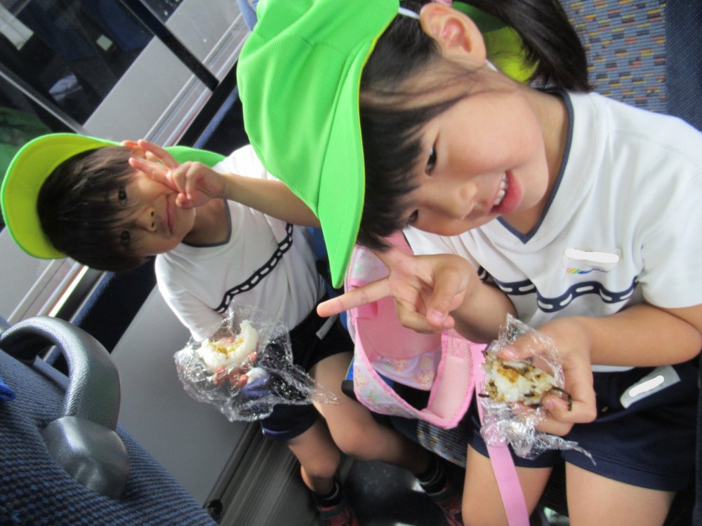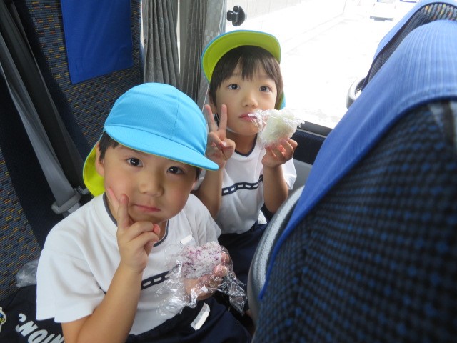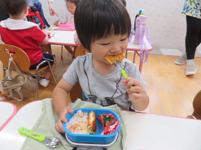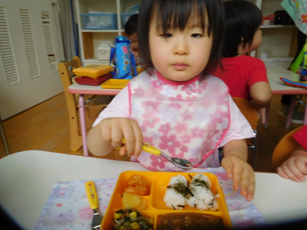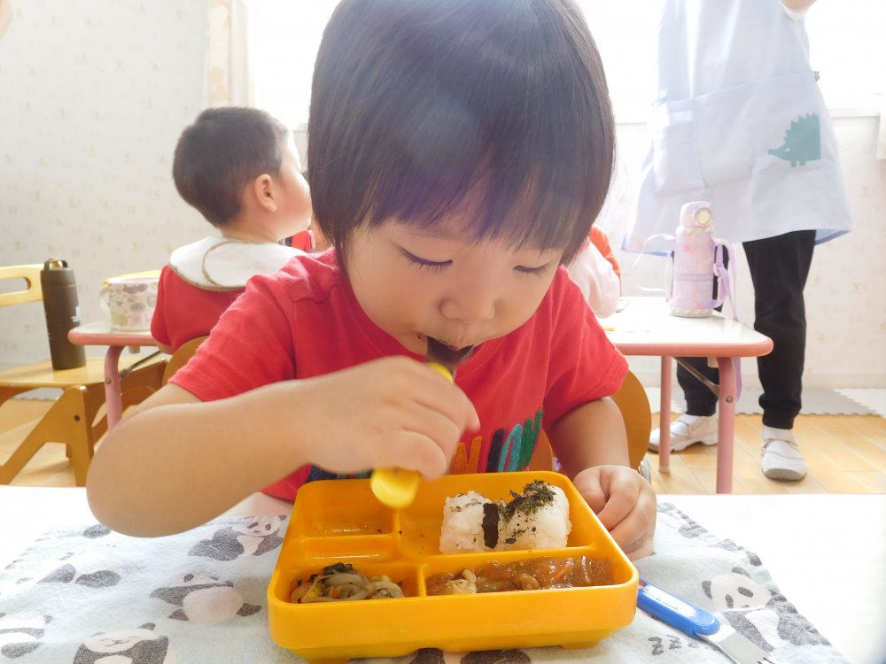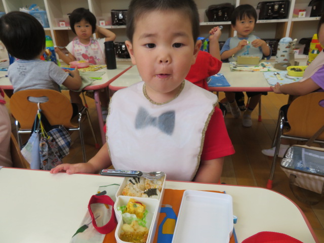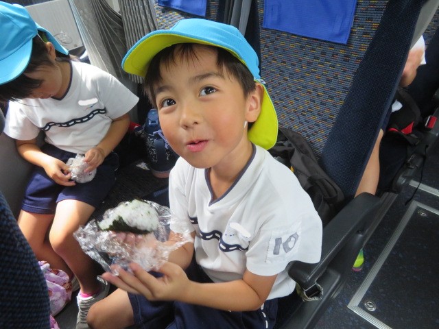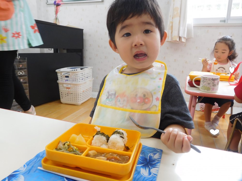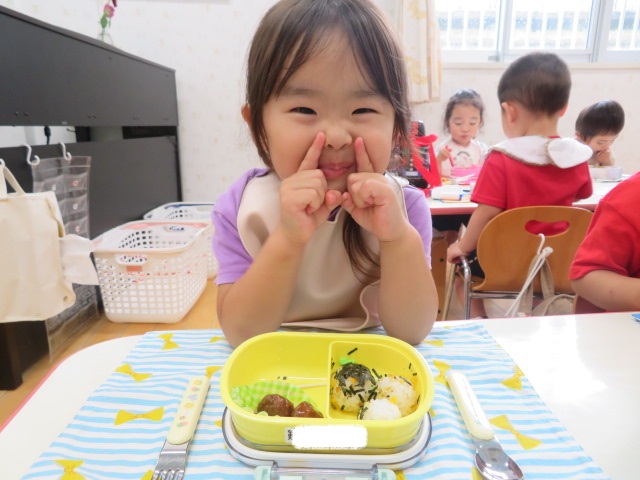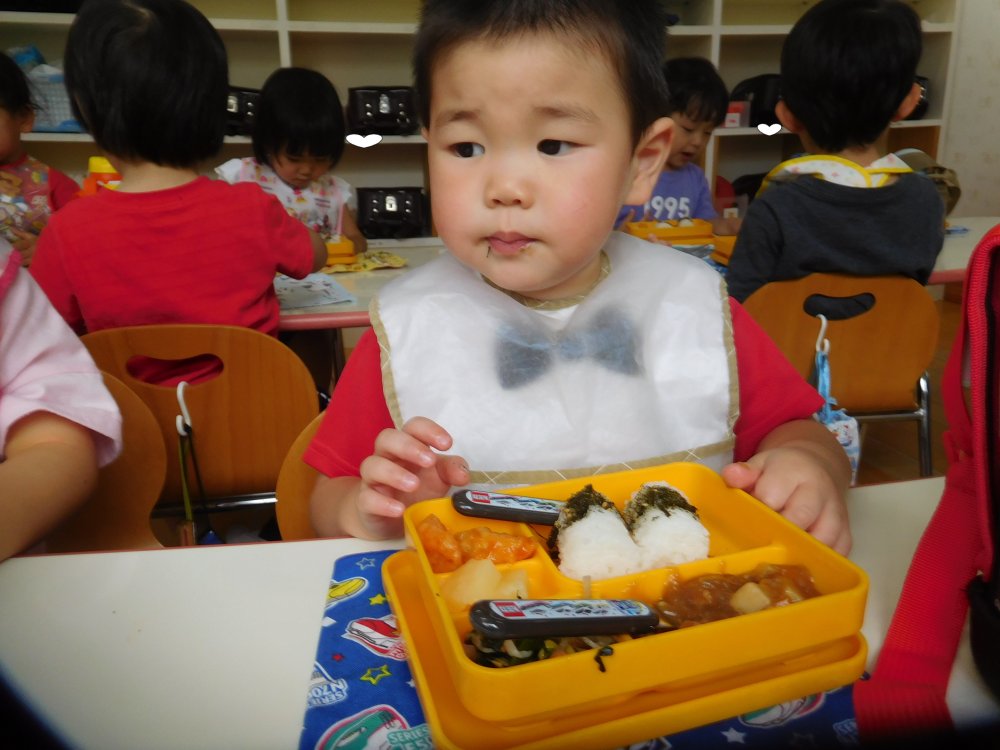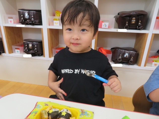 園長先生と一緒に食べるおにぎり美味しいね☺