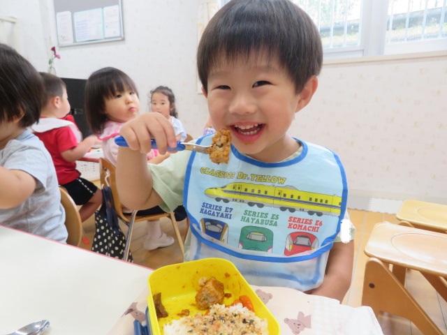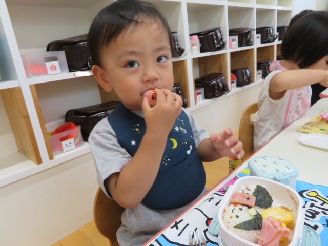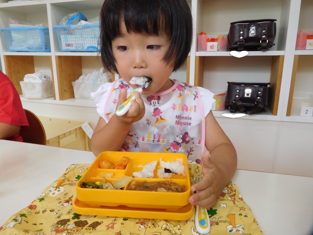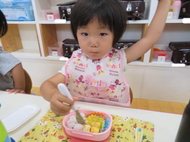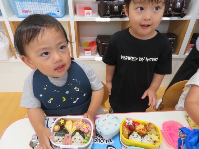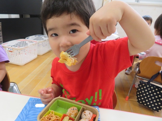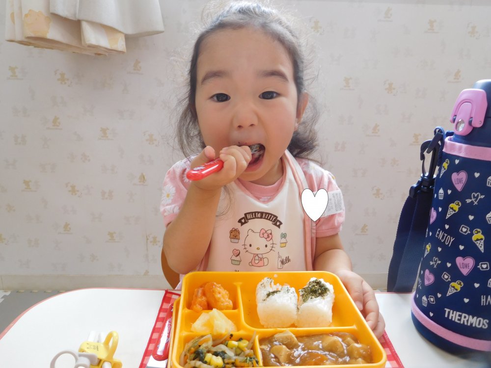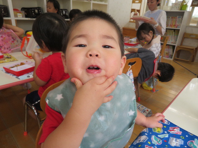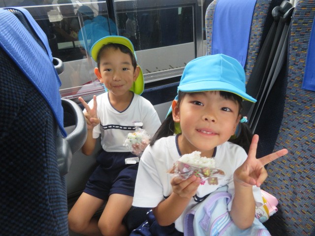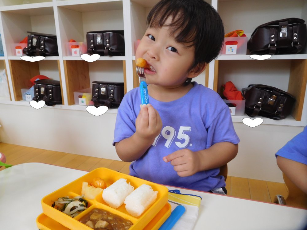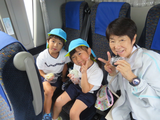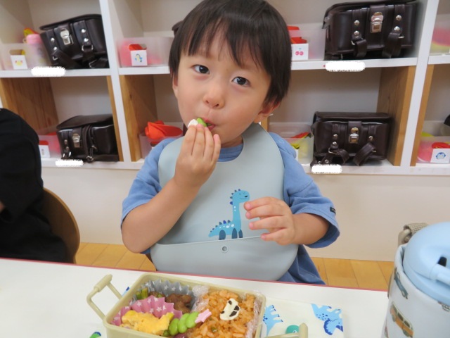 園長先生と一緒に食べるおにぎり美味しいね☺