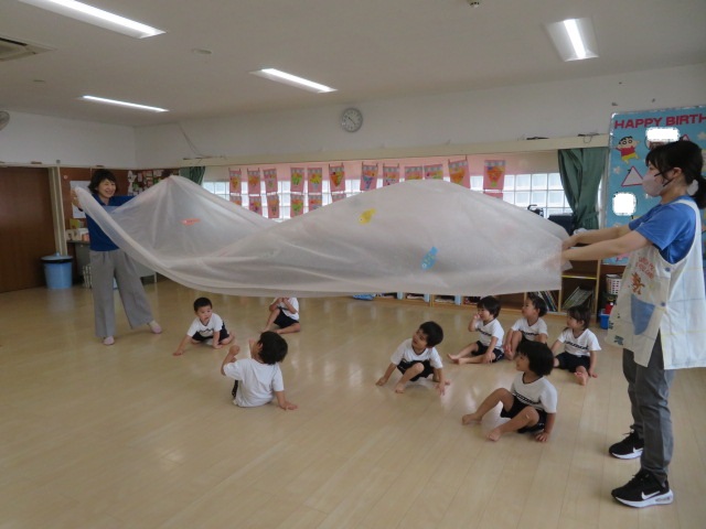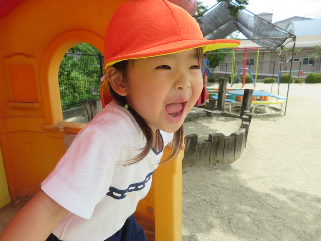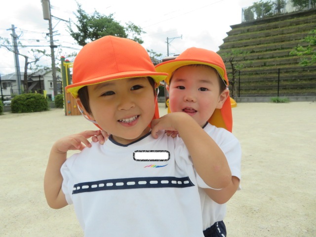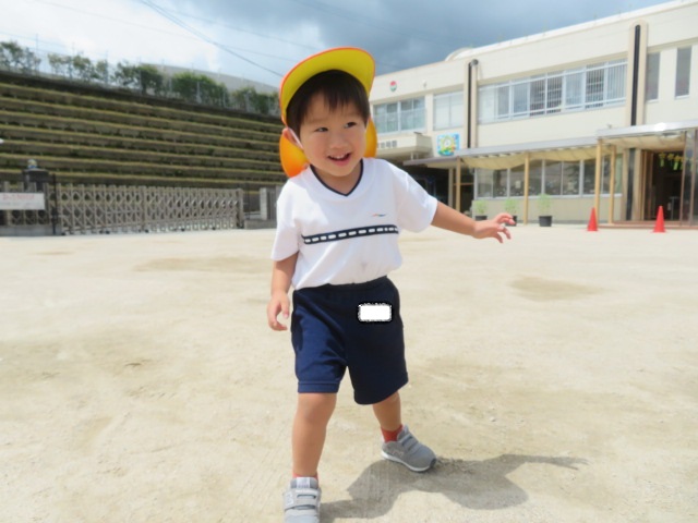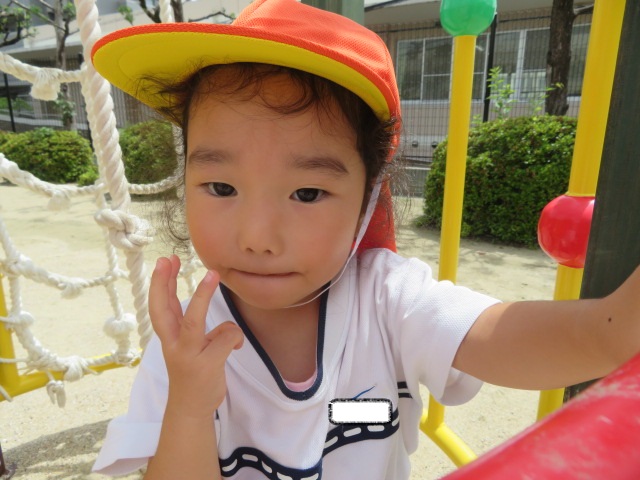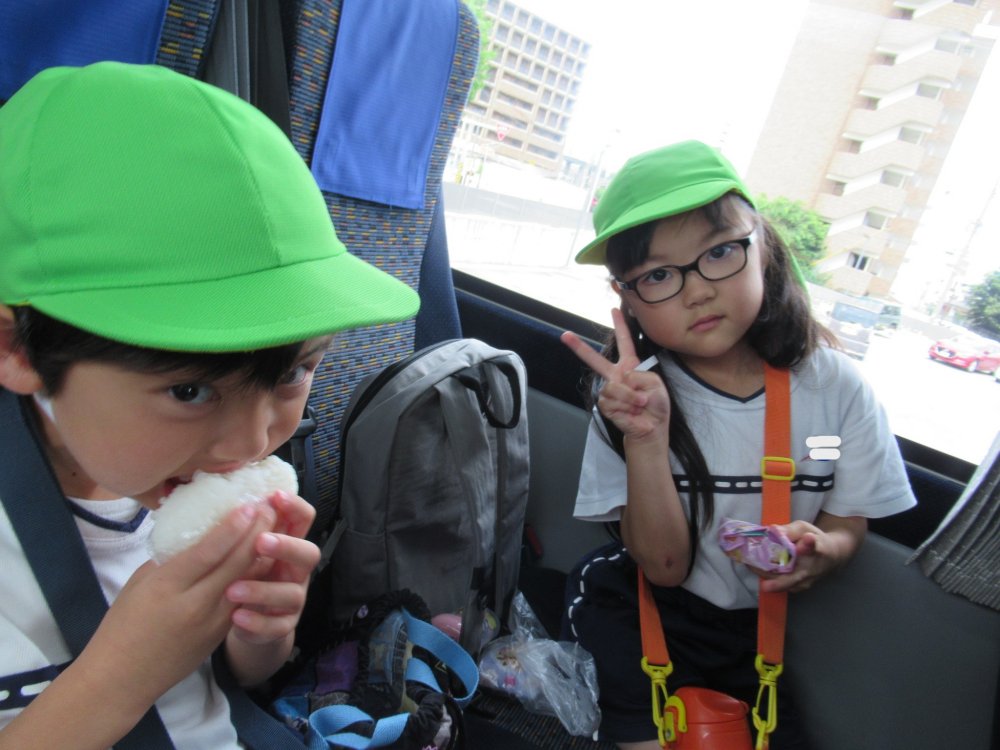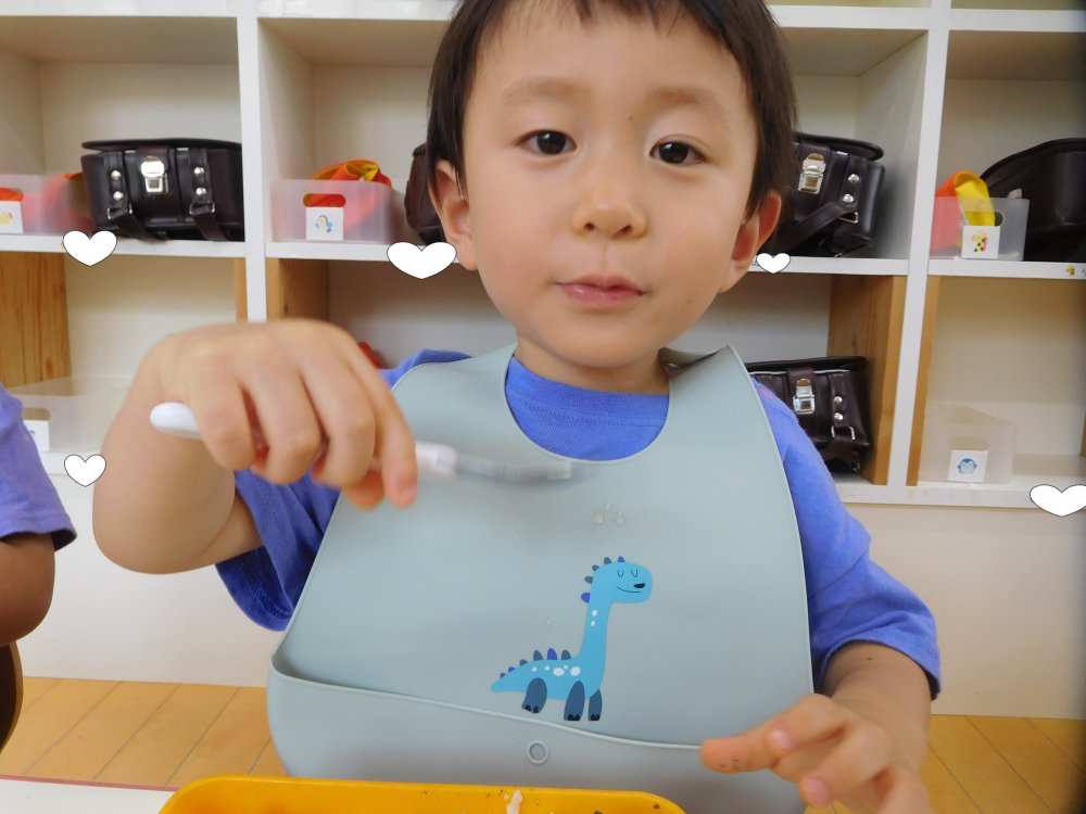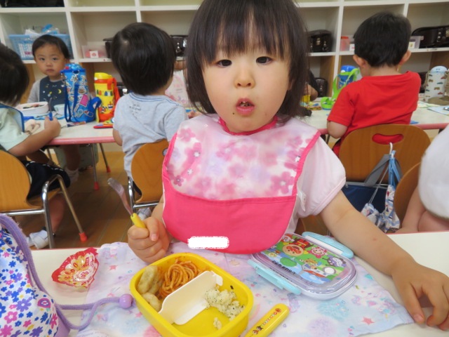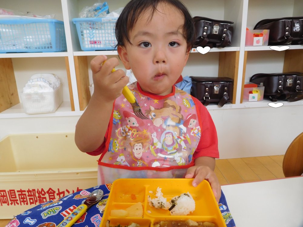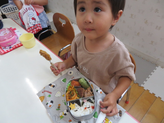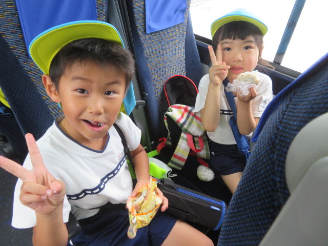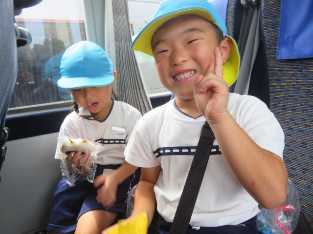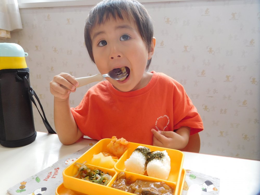 園長先生と一緒に食べるおにぎり美味しいね☺