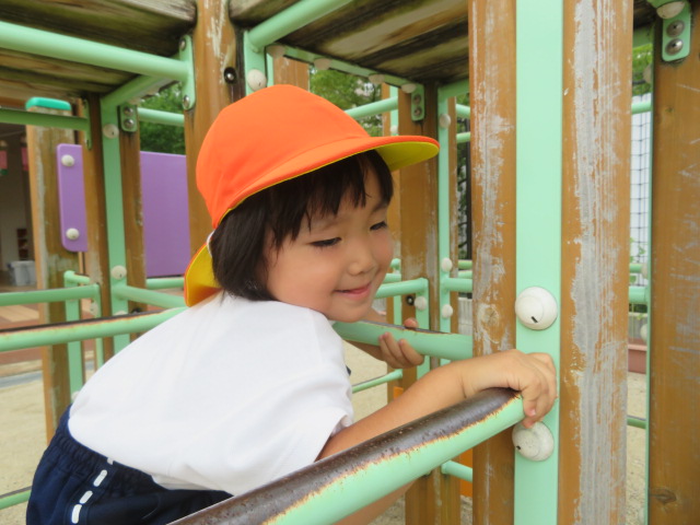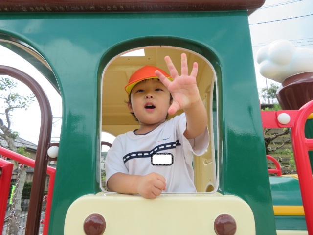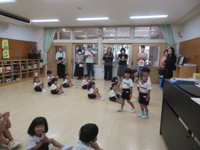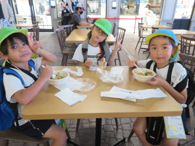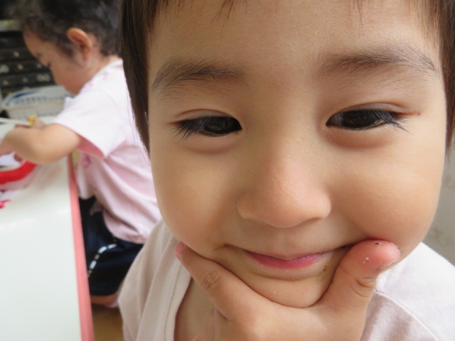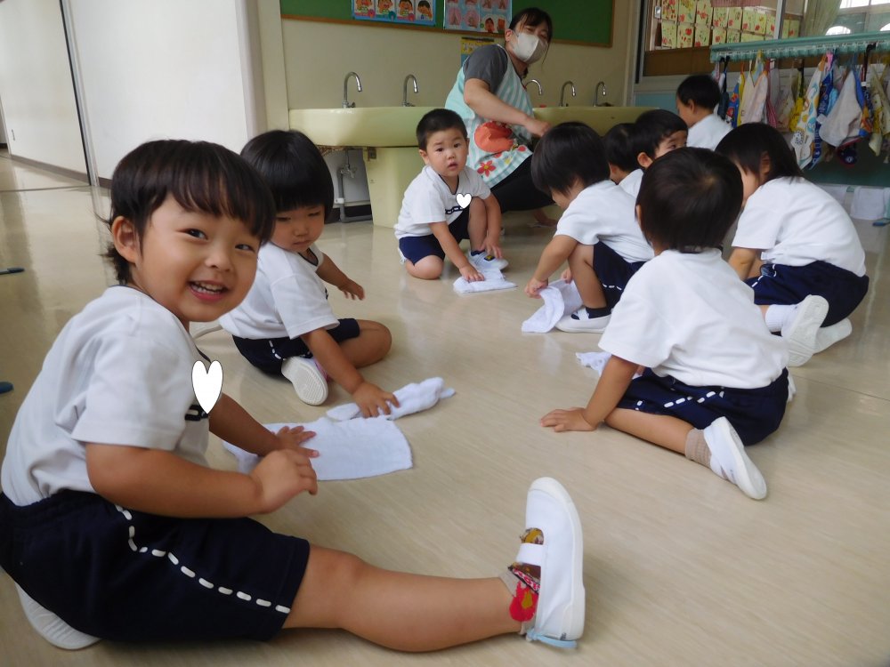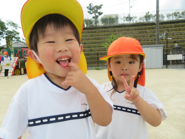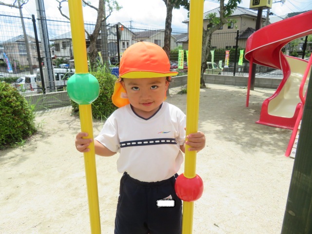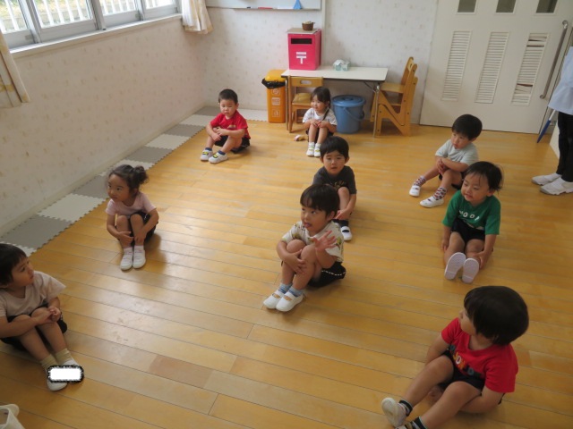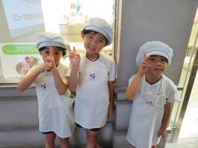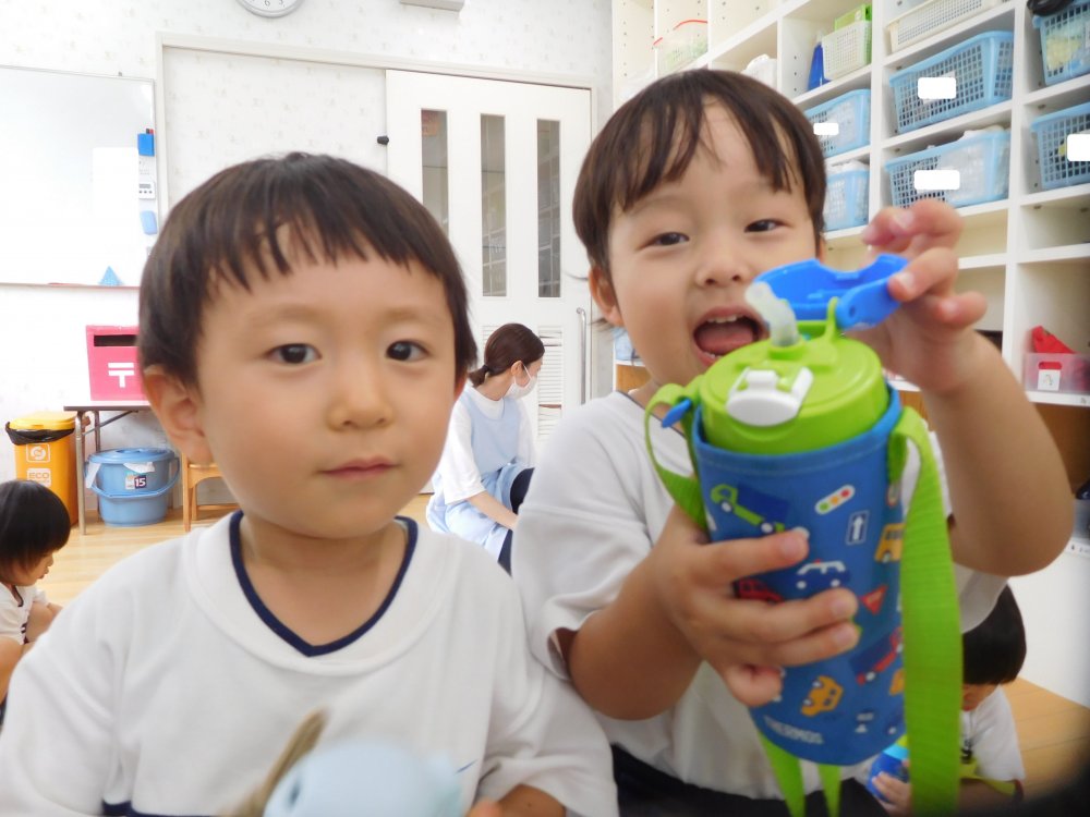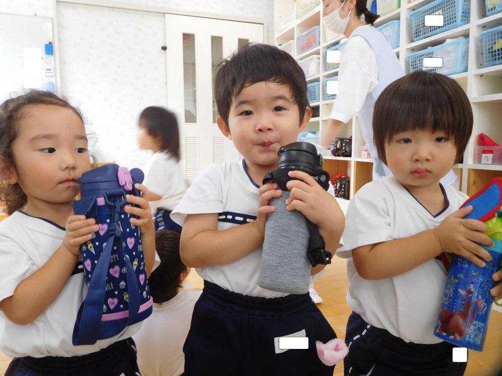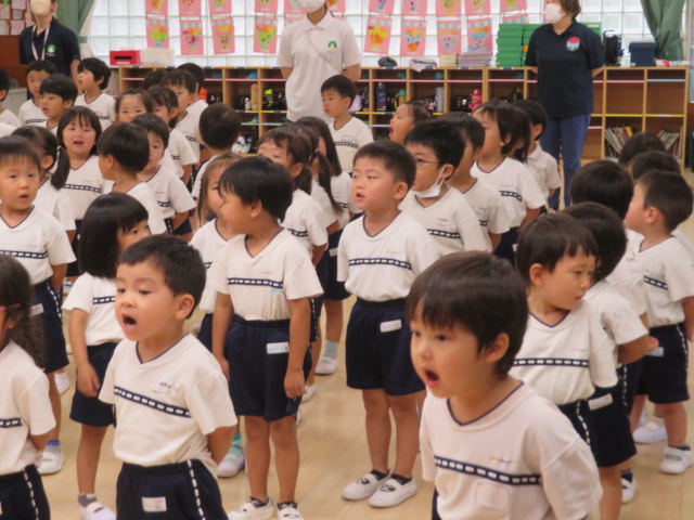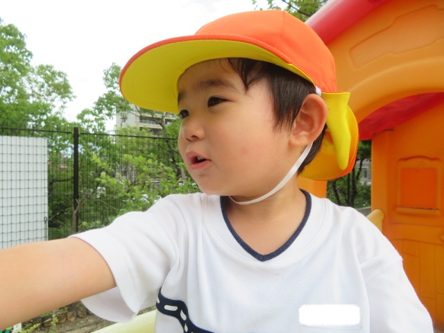 園長先生と一緒に食べるおにぎり美味しいね☺