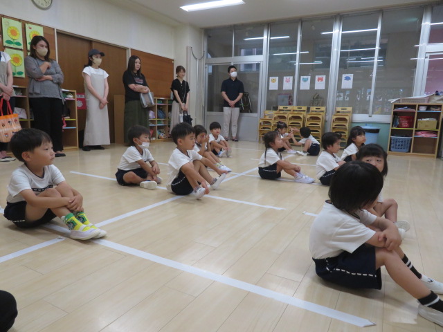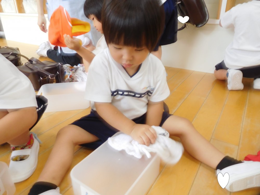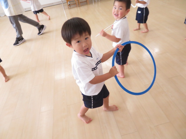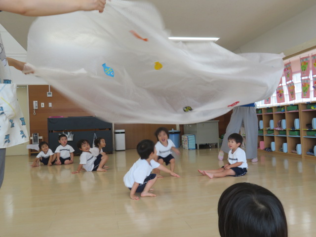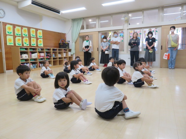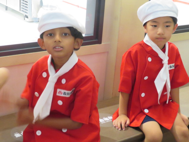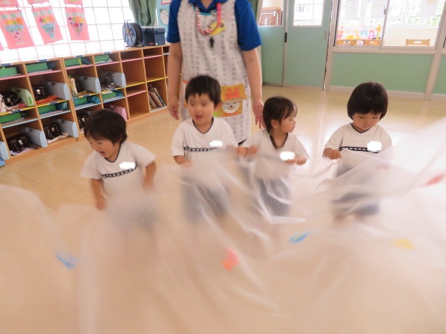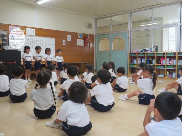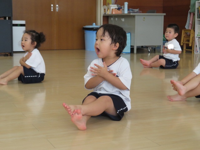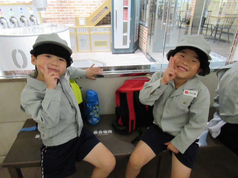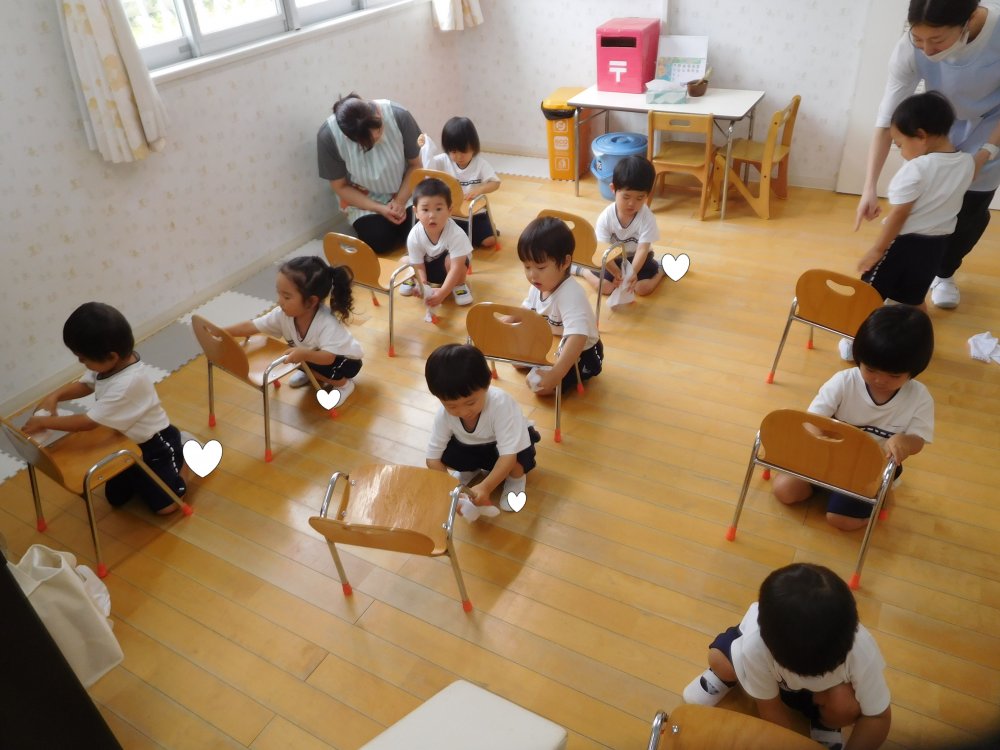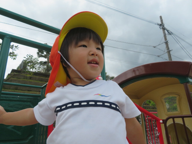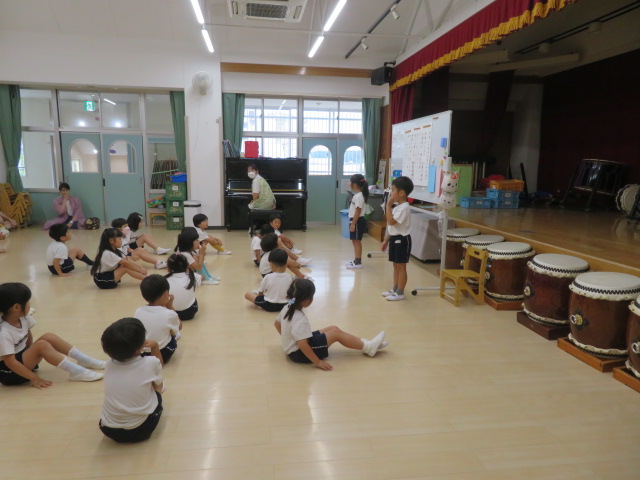 園長先生と一緒に食べるおにぎり美味しいね☺