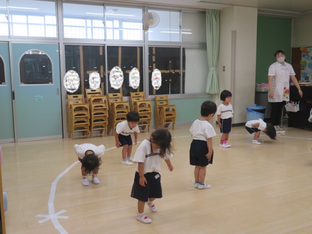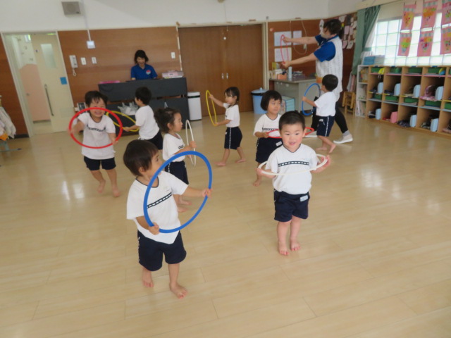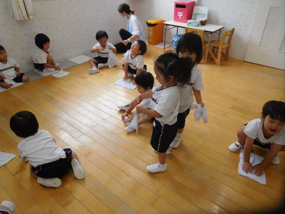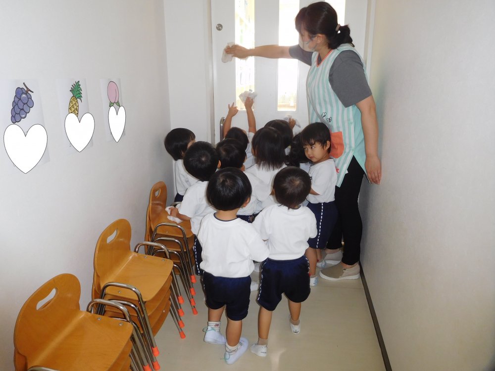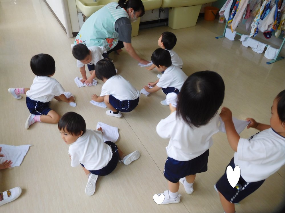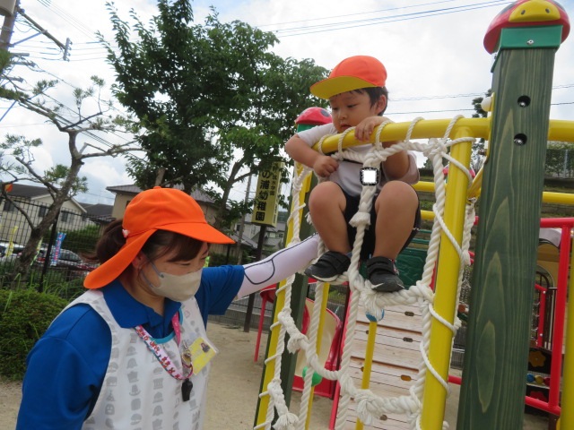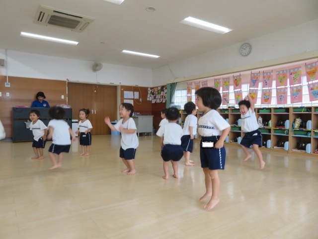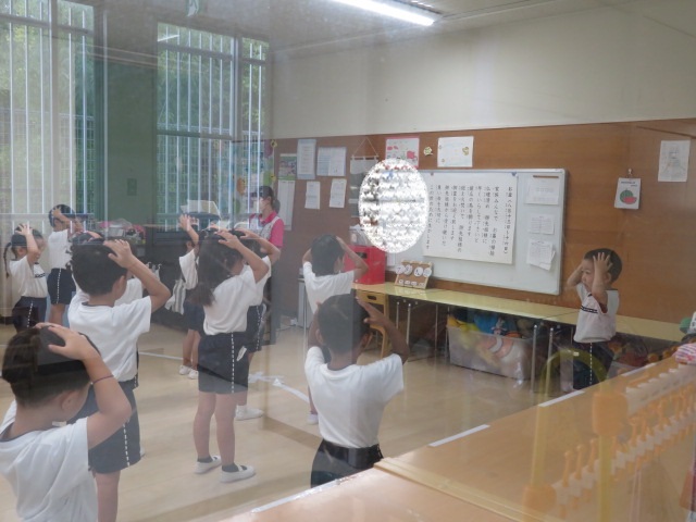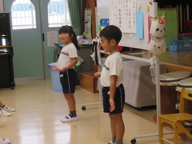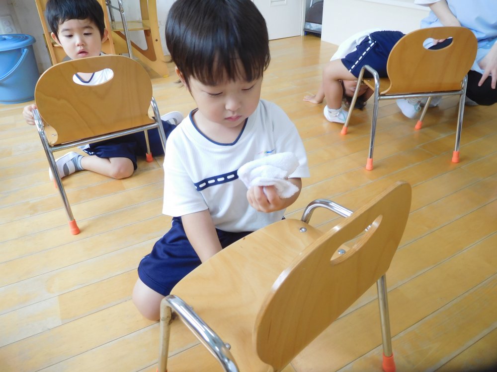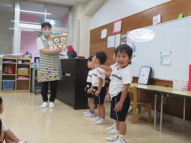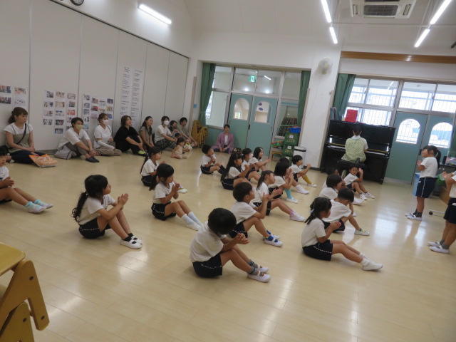 園長先生と一緒に食べるおにぎり美味しいね☺