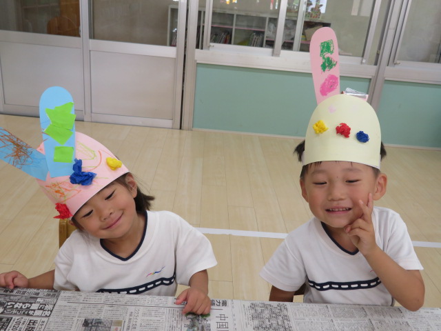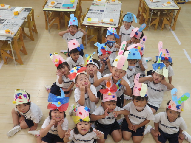 今日の製作は・・・かんむりうさぎです🐰
